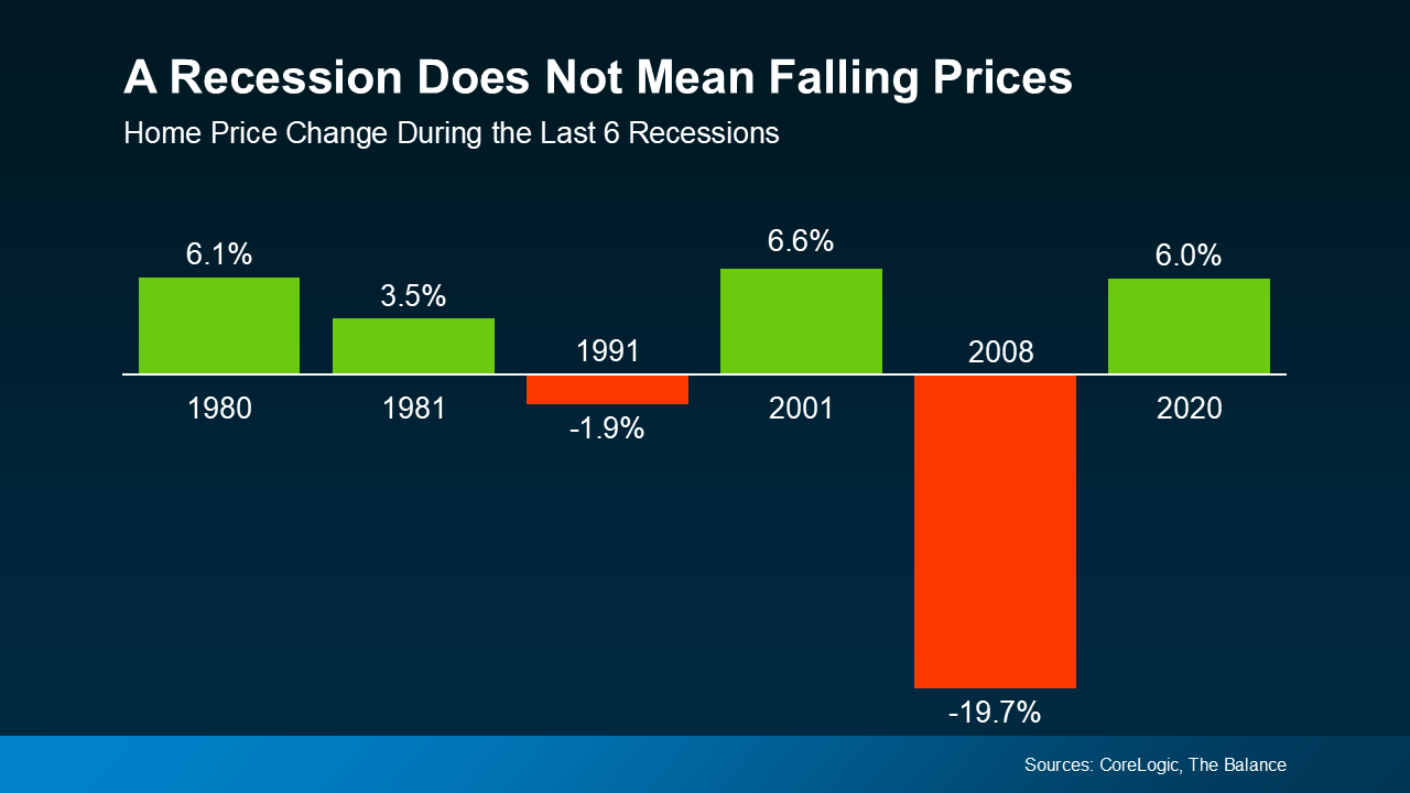 Here’s the biggest myth out there: that a recession means home prices will crash. That’s just not true.